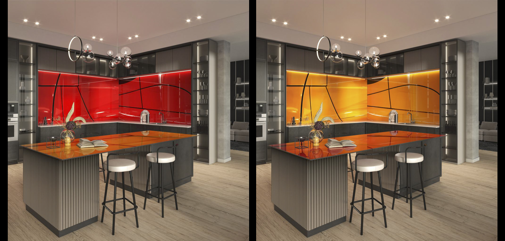 This collection features large format laminated glass decorative panels which can be backlit.