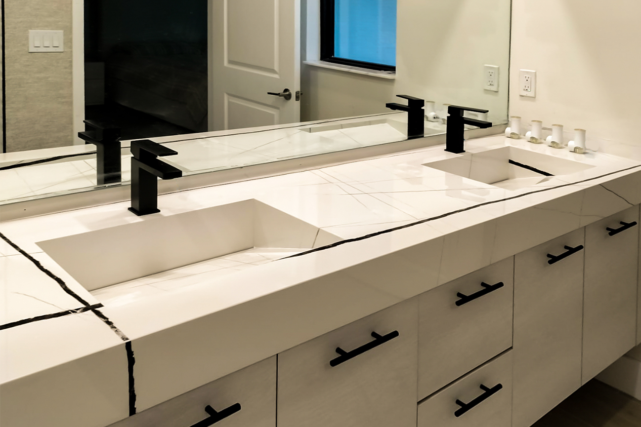 Sinks come in all shapes and sizes; integrated sink countertops are valued for their cohesion, symmetry, and seemingly endless customization. Whether you prefer a simple, refined look or one that's integrated with your luxurious quartz countertops, drop-in sinks can be the perfect addition.